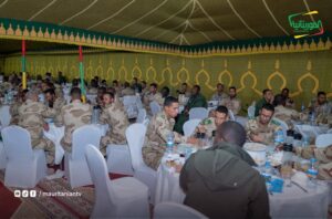 شارك فخامة رئيس الجمهورية، القائد الأعلى للقوات المسلحة، السيد محمد ولد الشيخ الغزواني، مساء الخميس، أفراد القوات المسلحة وقوات الأمن بحامية أطار إفطارهم الرمضاني، وذلك بمقر الأكاديمية العسكرية لمختلف الأسلحة بمدينة أطار.