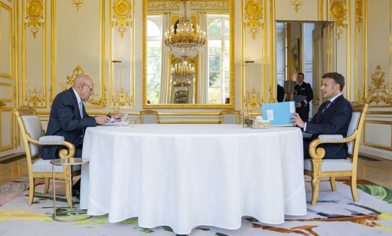 باريس: رئيس الجمهورية يجرى مباحثات على انفراد مع الرئيس الفرنسي في قصر الإليزيه