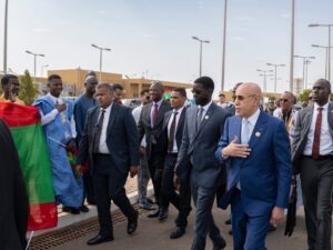 نظّمت الجالية الموريتانية في السنغال استقبالا حاشدا أمام مطار بليز دياني الدولي، ترحيبا بقدوم فخامة رئيس الجمهورية، السيد محمد ولد الشيخ الغزواني، إلى العاصمة داكار، للمشاركة في المنتدى الدولي العاشر للسلام والأمن في إفريقيا.